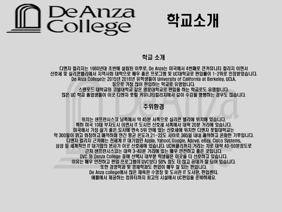 DeAnza 학교 소개 입니다.