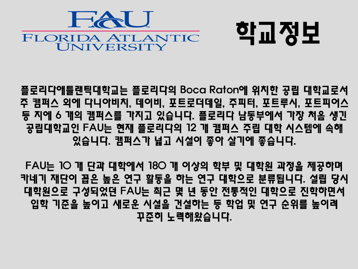 Florida Atlantic 학교 소개 입니다.
