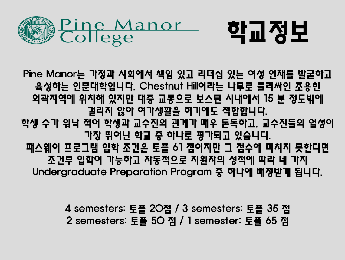 Pine manor 학교 소개 입니다.