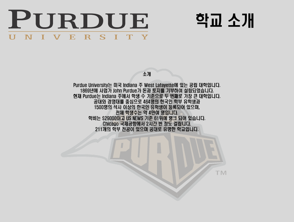 Purdue 학교 소개 입니다.